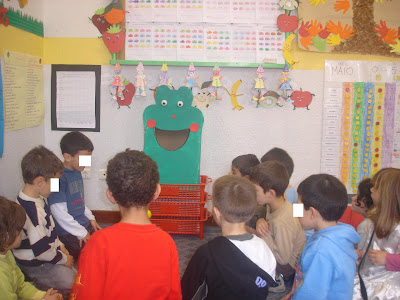Tudo começou acerca de duas/três semanas, quando uma das auxiliares entrou na nossa sala a perguntar-me se eu queria um caixote de cartão daqueles de boa qualidade que as editoras normalmente enviam a embalar os livros. Eu respondi prontamente que sim! que era para fazer um Papa-bolas! Logo um coro de vozes se juntou: Um Papa-bolas??? Professora, o que é um Papa-bolas?!?Ao que eu respondi que era surpresa.